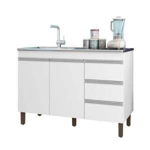 BALCÃO KAREN PIA CUBA 120CM 2 PORTAS BRANCO PETENELLA